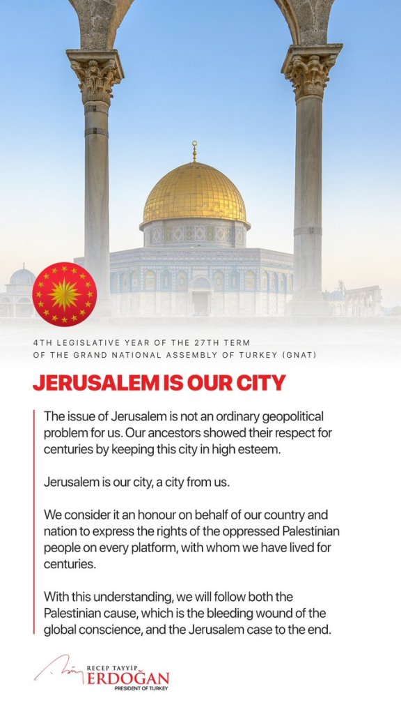 In the following update from October 3, 2020, Recep Erdoğan says, “Jerusalem is our city”: